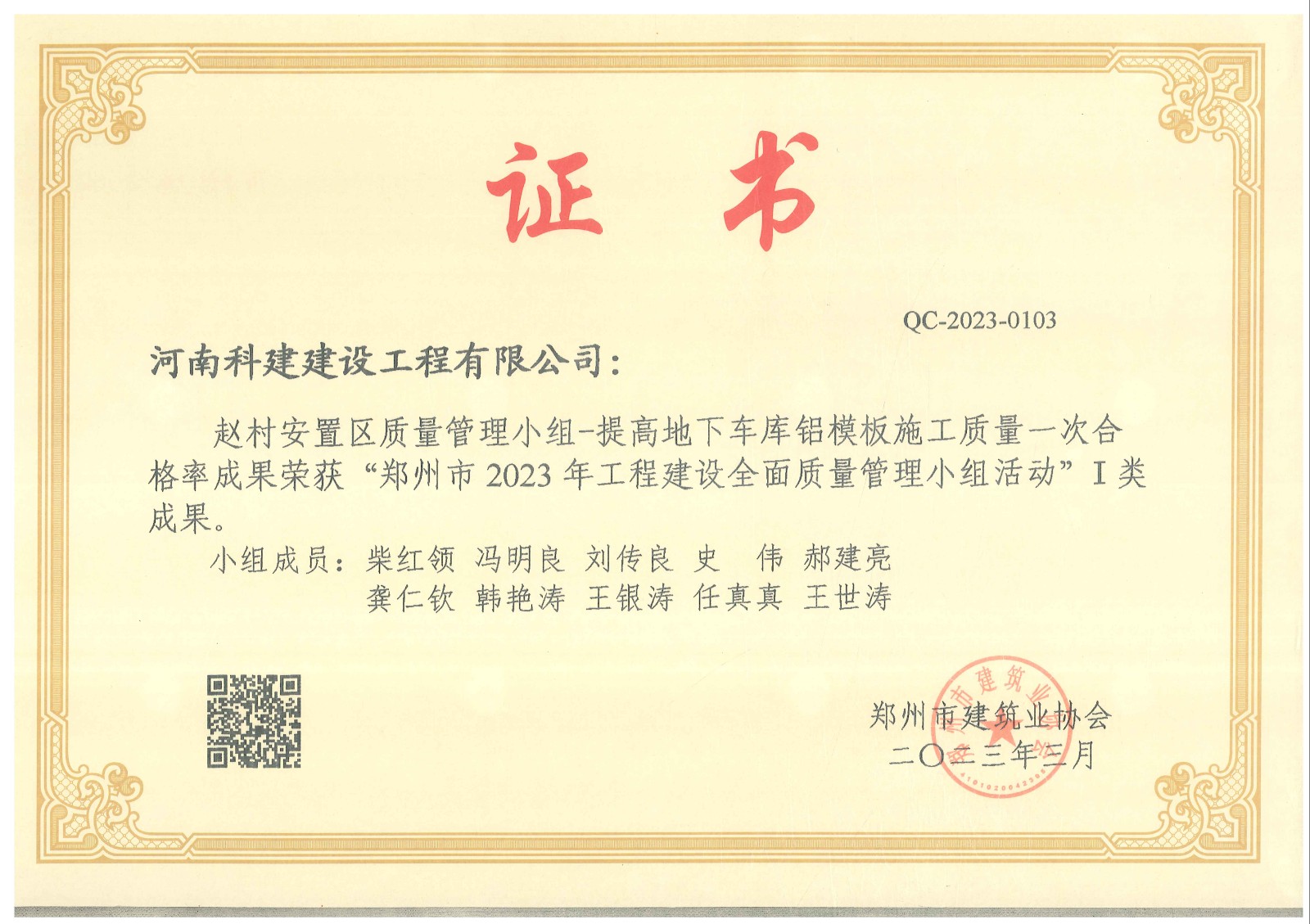 最終我公司海馬國(guó)際商務(wù)中心項(xiàng)目榮獲鄭州市2023年工程建設(shè)全面質(zhì)量管理優(yōu)秀QC成果一類成果獎(jiǎng)1項(xiàng),二類成果獎(jiǎng)2項(xiàng)。恒大趙村安置區(qū)項(xiàng)目榮獲一類成果獎(jiǎng)1項(xiàng)。經(jīng)開區(qū)人才公寓項(xiàng)目項(xiàng)目榮獲一類成果獎(jiǎng)1項(xiàng)。