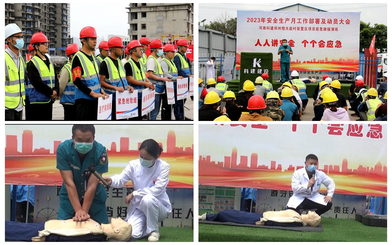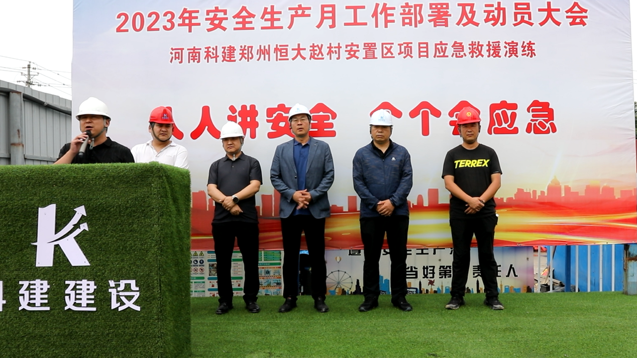 2023年5月30日上午10:00,以“人人講安全,個(gè)個(gè)會(huì)應(yīng)急”為主題的2023年“安全生產(chǎn)月”動(dòng)員大會(huì)暨高處作業(yè)專項(xiàng)應(yīng)急演練活動(dòng)在恒大趙村安置區(qū)項(xiàng)目召開(kāi),建設(shè)單位工程部經(jīng)理鄭志成、萬(wàn)安工程咨詢有限公司監(jiān)理代表、公司董事兼副總經(jīng)理馬西鋒、公司副總經(jīng)理齊含釗、公司副總經(jīng)理孫全明、恒大趙村安置區(qū)項(xiàng)目經(jīng)理史偉、公司工程部、技術(shù)部及公司所屬各項(xiàng)目生產(chǎn)經(jīng)理、技術(shù)負(fù)責(zé)人、安全主管,恒大趙村安置區(qū)施工現(xiàn)場(chǎng)作業(yè)人員共計(jì)200余人參加,姬濤主持活動(dòng)。